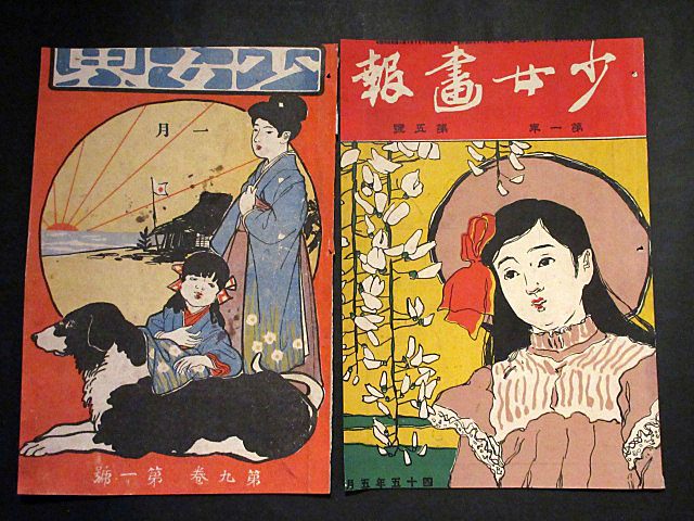 スクリーン上は『少女界』『少女世界』『少女画報』『少女の友』の書影。