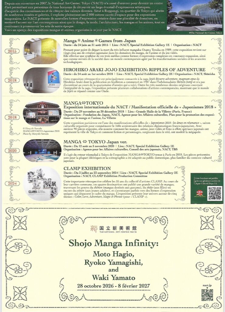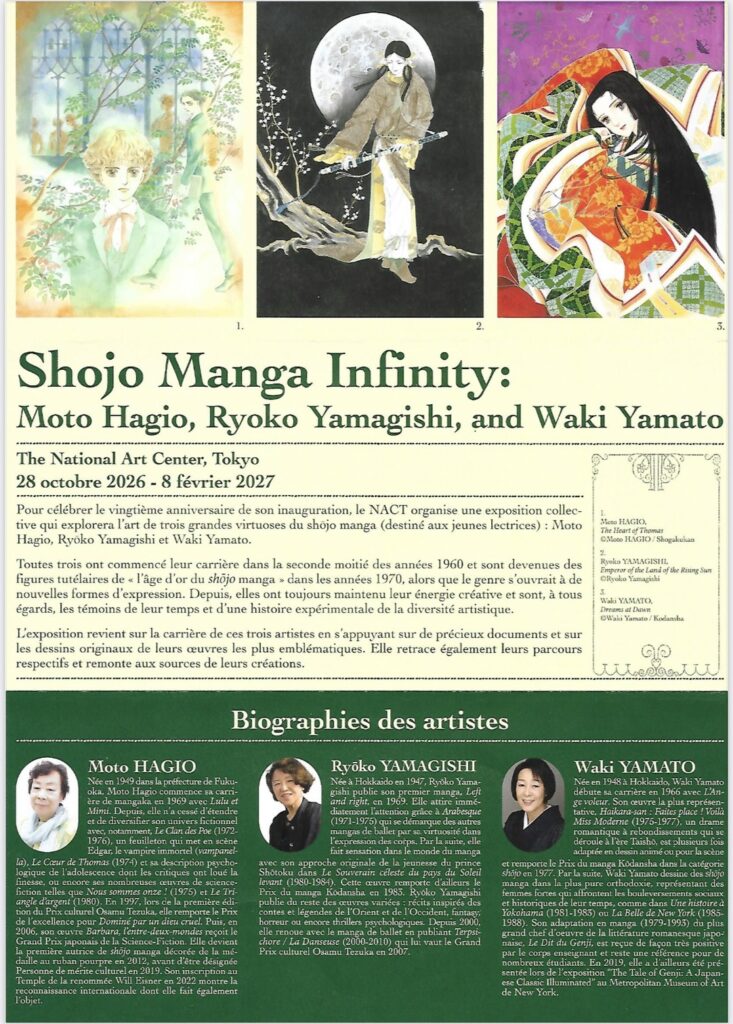 「少女漫画・インフィニティ 萩尾望都×山岸凉子×大和和紀 三人展」のパンフレット(フランス語版)が会場入口で入場者一一人一人に配られていたそうです。