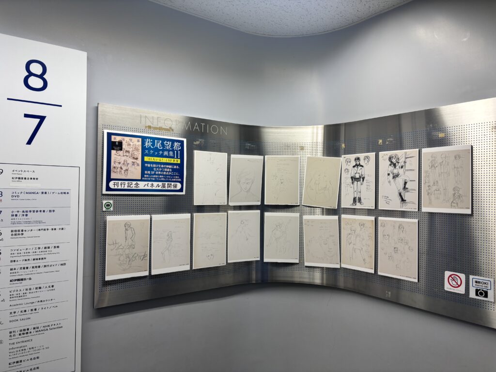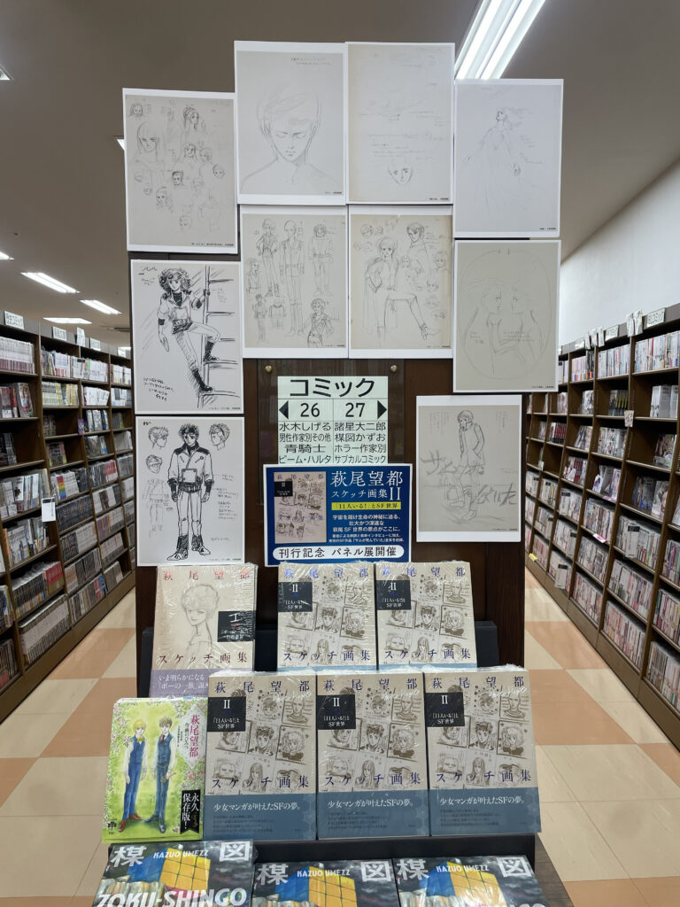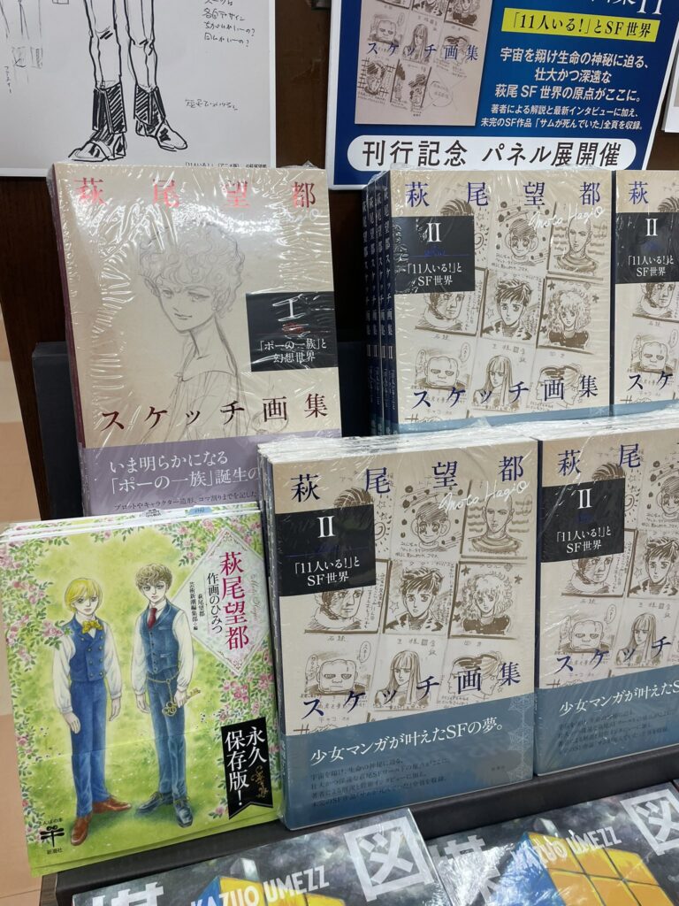 2026年3月25日に「萩尾望都スケッチ画集II─「11人いる!」とSF世界─」が新潮社から刊行されました。Iの「ポーの一族」刊行時と同様に、今回も書店でミニ・パネル展が展開されています。最大15点(お店によって店数が異なります)の小さな展示です。こちらの試し読みも合わせてご覧ください。